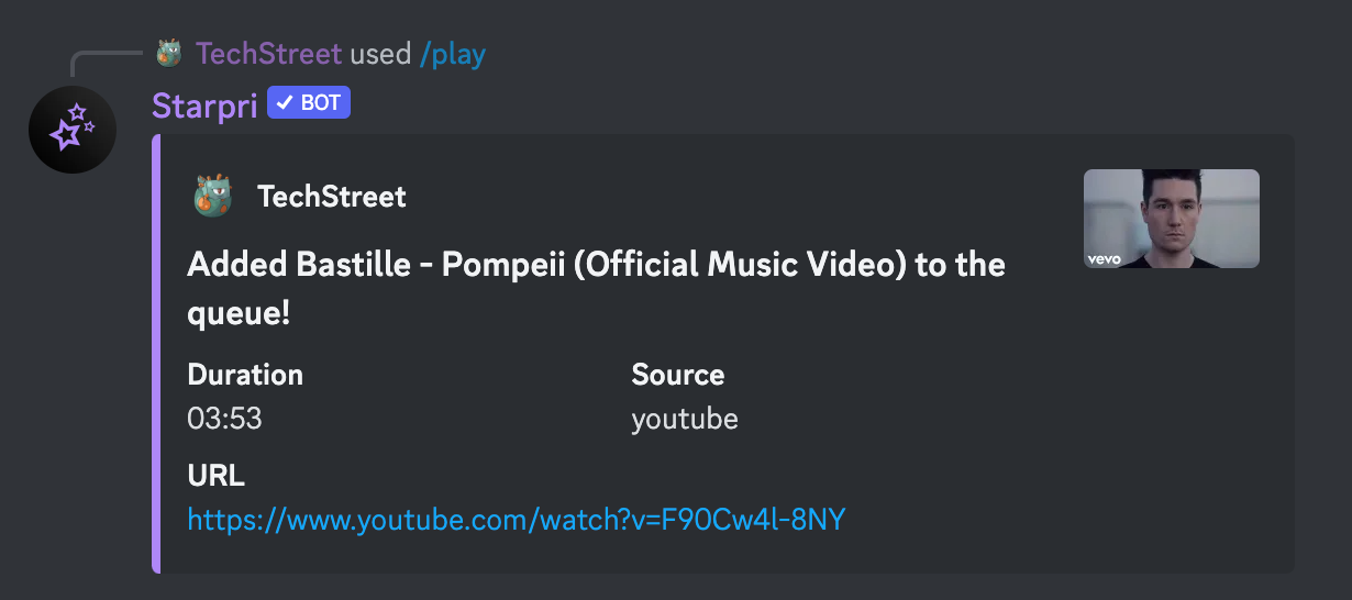 Introducing an innovative music feature to Starpri, we've elevated the audio experience for our community. Seamlessly integrated, this music feature allows users to summon their favorite tunes with simple commands, turning any server into a vibrant virtual jukebox. The intuitive commands make it easy to play, pause, skip, and adjust volume, ensuring that users have complete control over their auditory experience. With support for popular music streaming platforms like Spotify, YouTube or SoundCloud, users can enjoy a vast selection of songs, creating a dynamic and engaging atmosphere for all members. Whether it's background music for gaming sessions or a virtual dance party, Starpri's music feature brings people together through the universal language of music.