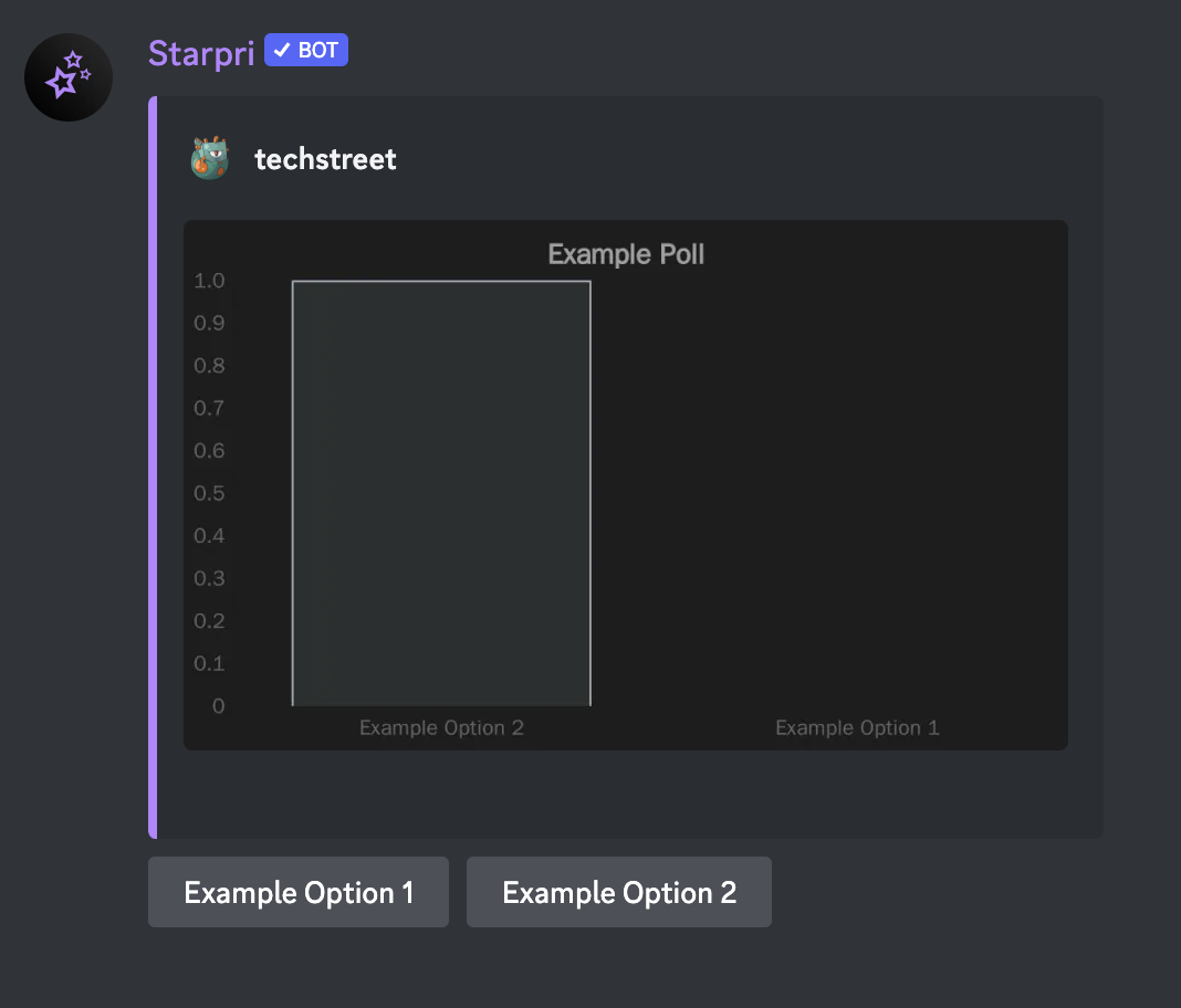 You may make polls in the Discord app with the help of the robust Starpri poll module. You can really engage your community with this plugin! The poll's duration, the number of multiple-choice or single-choice options, and even the addition of more useful features are all customizable! Users in your Discord server will participate by voting when the poll is live. Votes are gathered and totaled by the bot plugin, which then displays the results in real time in a graph format. This tool is fantastic for getting input from users or just encouraging communication among server members. A poll plugin makes the process of organising events, selecting games, selecting guild leaders, or getting feedback easier.