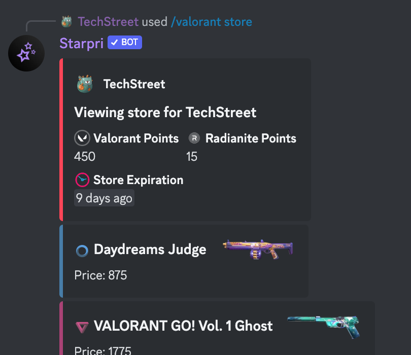Introducing our Valorant Stats and Store viewer feature! Now, with a quick command, our bot delivers detailed insights into your in-game performance—tracking kills, accuracy, round wins, and more. It's not just about personal progress; you can easily compare stats with friends, fostering friendly competition and shared gaming experiences. Whether you're a casual player or aiming for the top, this feature turns our Discord server into a hub for tracking, analyzing, and celebrating your Valorant achievements together.